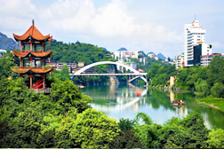 铜仁市,贵州省辖地级市,位于贵州省东北部,武陵山区腹地,东邻湖南省怀化市芷江侗族自治县,北与重庆市秀山土家族苗族自治县接壤,西北高,东南低,全境以山地为主,大多数地域属中亚热带季风湿润气候区,总面积18003平方千米。
